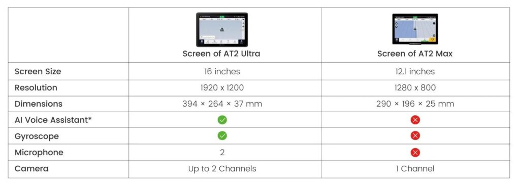 FJD AT2 Ultra wyznacza nowy standard dla systemów automatycznego sterowania dzięki doskonałemu, bardzo dużemu 16-calowemu wyświetlaczowi i wiodącemu w branży asystentowi głosowemu AI*. Oferuje elastyczne sterowanie za pomocą poleceń głosowych, pozwalając skupić się na prowadzeniu pojazdu i wykonywaniu zadania. Dzięki wbudowanemu żyroskopowi AT2 Ultra umożliwia łatwe przełączanie wyświetlacza między trybem pionowym a poziomym, zapewniając prawdziwie inteligentną automatyzację pracy w różnych scenariuszach rolniczych.